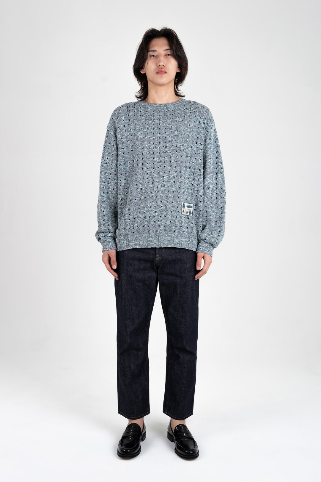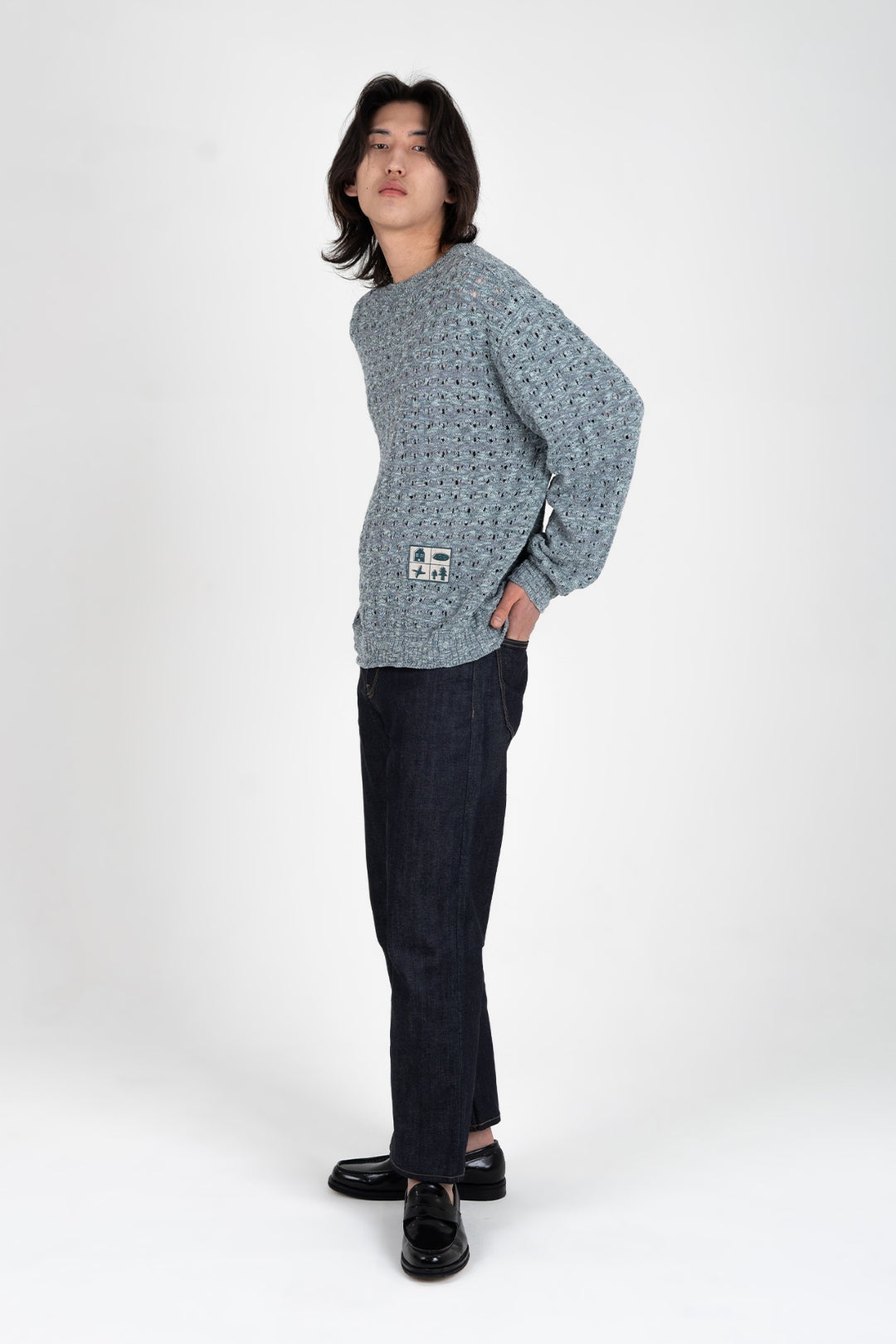 Product Description: Inspired by the desire to escape urban fatigue for a serene retreat, this design began. The loose-fit mesh knit pairs effortlessly with any outfit, blurring the line between daily life and rest. An embroidered patch on the lower left depicts a window onto the new city’s diverse elements, symbolising a fresh start and peaceful everyday life.