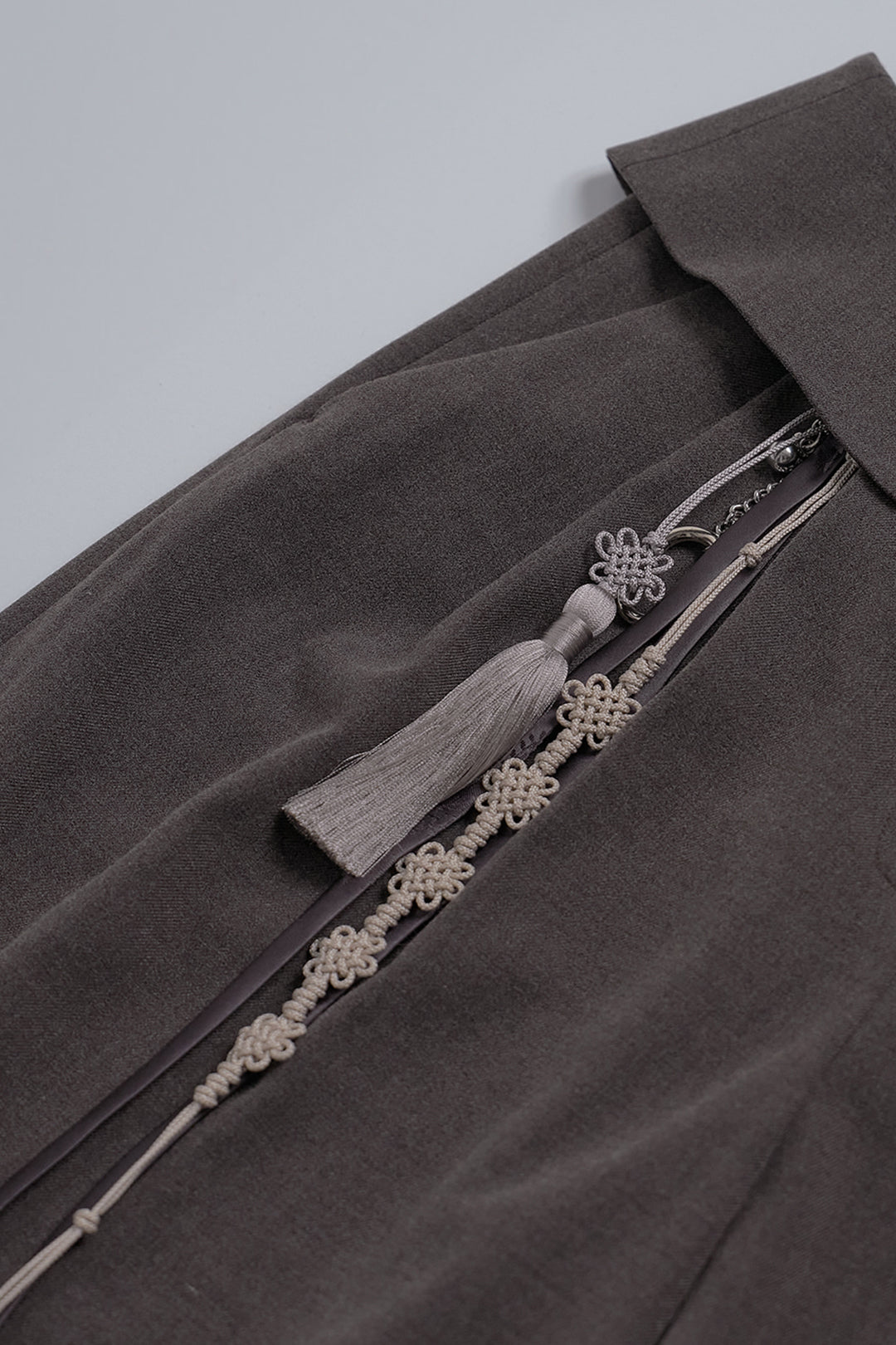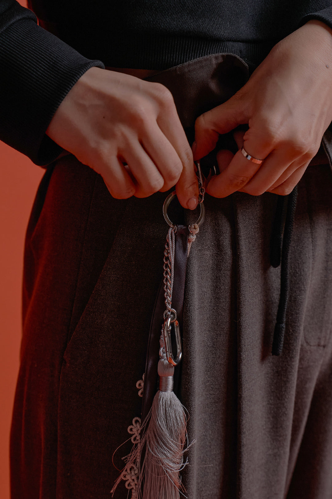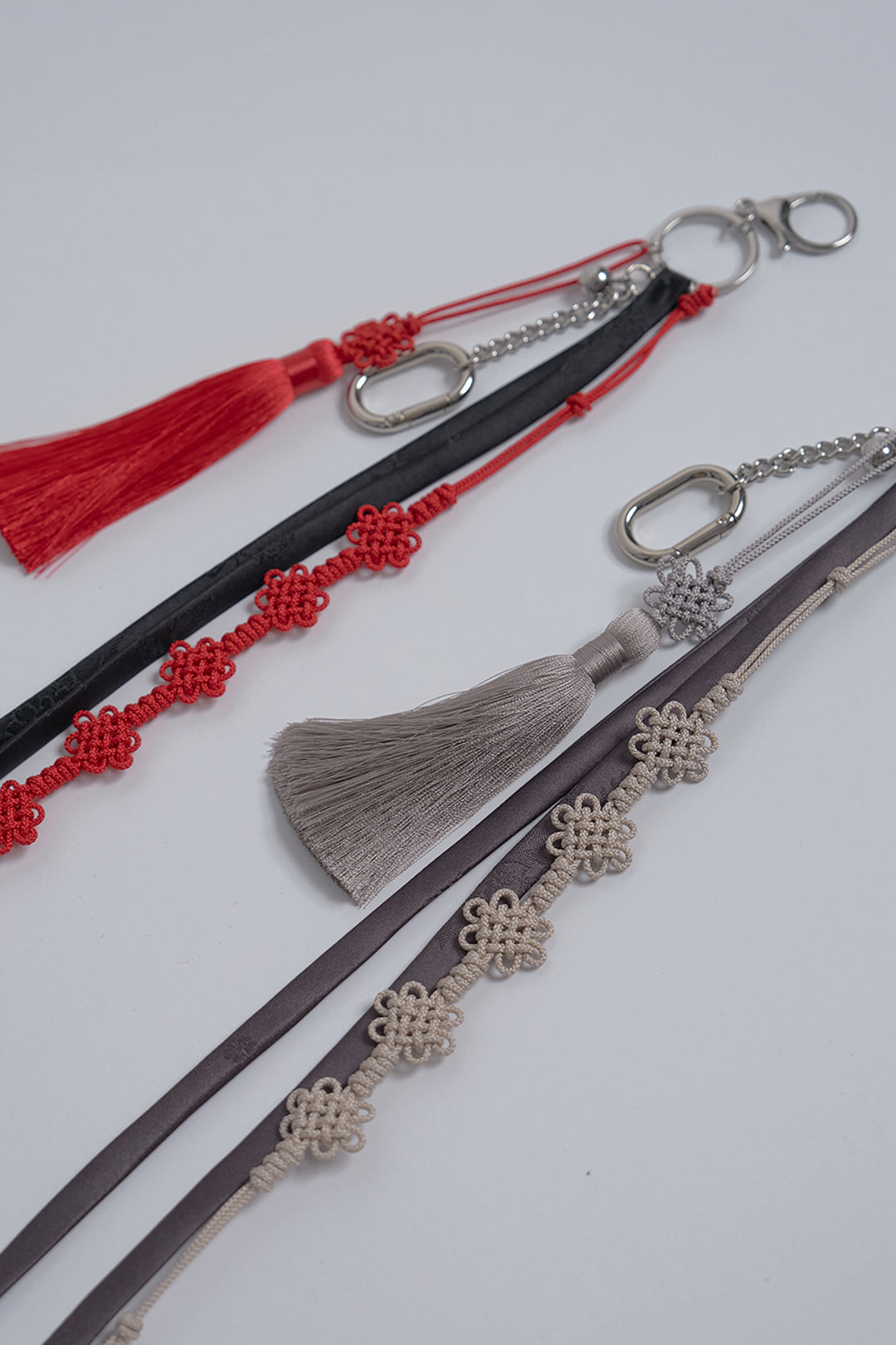 Product Description: This is a decorative tassel created by combining traditional chrysanthemum knots and tassel knots. It is made with Yangsaekdan, a traditional hanbok fabric, which adds a subtle sheen and a luxurious texture. With its simple structure, it can be easily worn or attached anywhere.