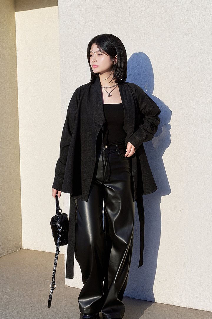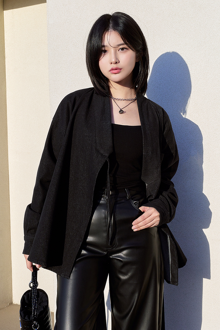 Product Description: This denim shacket jeogori can be worn as a shirt in winter and a jacket in spring and autumn.