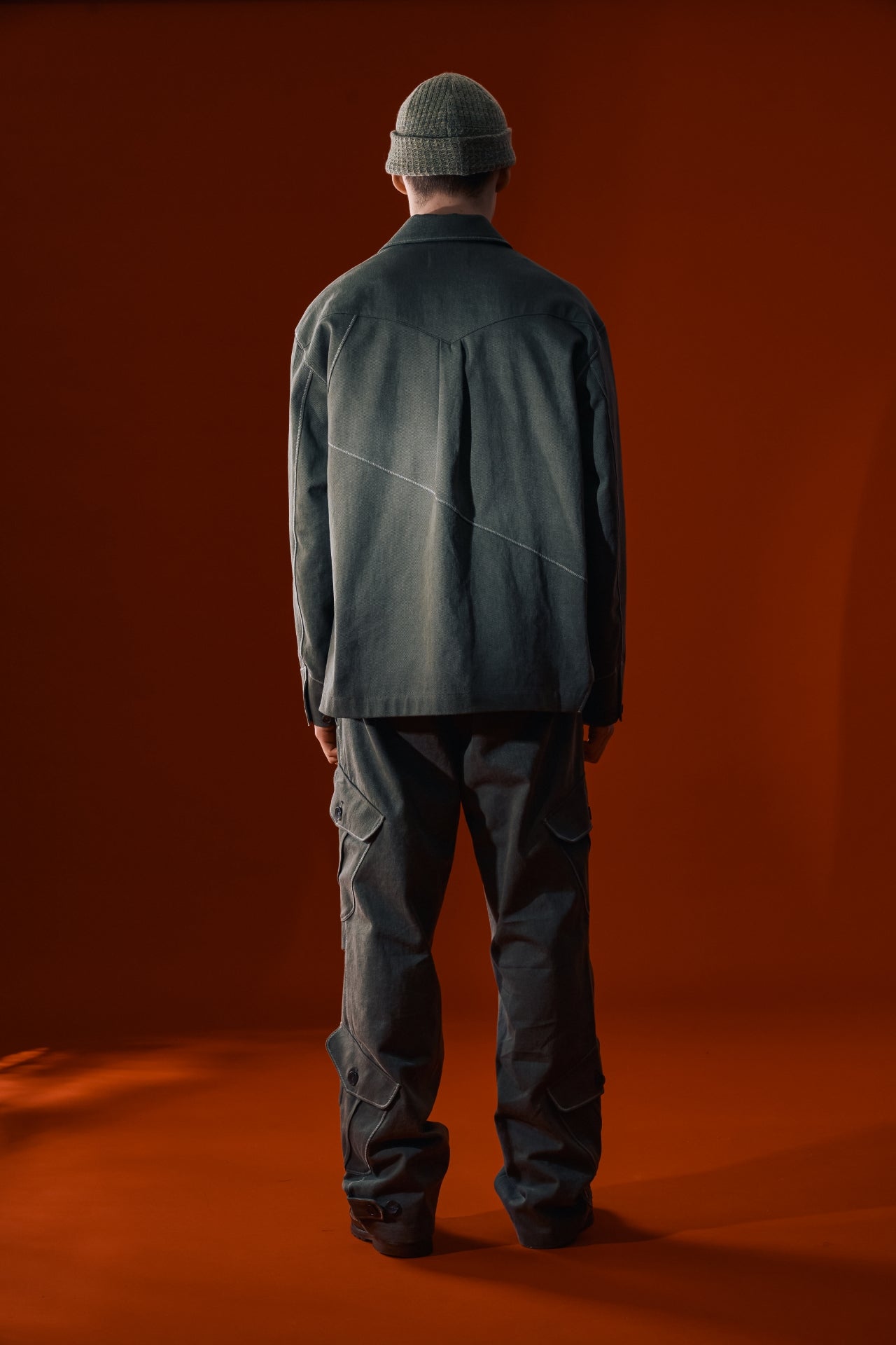 Product Description: Crafted from durable twill fabric, these pants combine utility with style. Designed with four tilted cargo pockets for easy access and secure storage, they feature knee tuck detailing for enhanced mobility and comfort. The adjustable buttoned hems allow for a customizable fit, while subtle zigzag stitching adds a refined touch of durability. Built for everyday wear, they balance functionality with a modern edge.