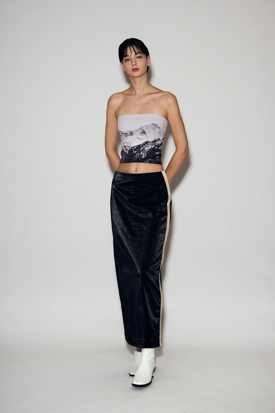 Product Description: The leatherette H-line skirt from Lunecave is made from eco-leather, featuring a quilted texture with ideal thickness and a subtle sheen. Designed and produced entirely in-house, it highlights Lunecave’s signature silhouette and detailing, crafted with specialised leather sewing techniques for exceptional quality.