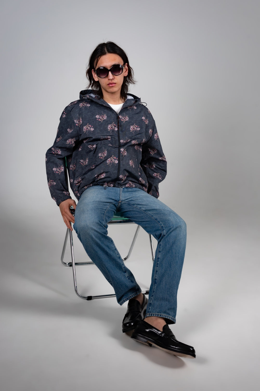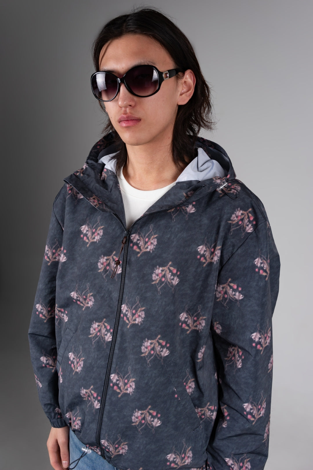 Product Description: The “Hazy Race” collection captures the essence of hastily planned new cities with uncertain futures. Featuring a blurred CMYK print, achieved through high-quality digital printing, this oversized windbreaker offers both comfort and style. An illustration of withered flowers bearing fruit symbolises a new beginning, inspired by the phrase, “After the flowers wither, fruit is born.