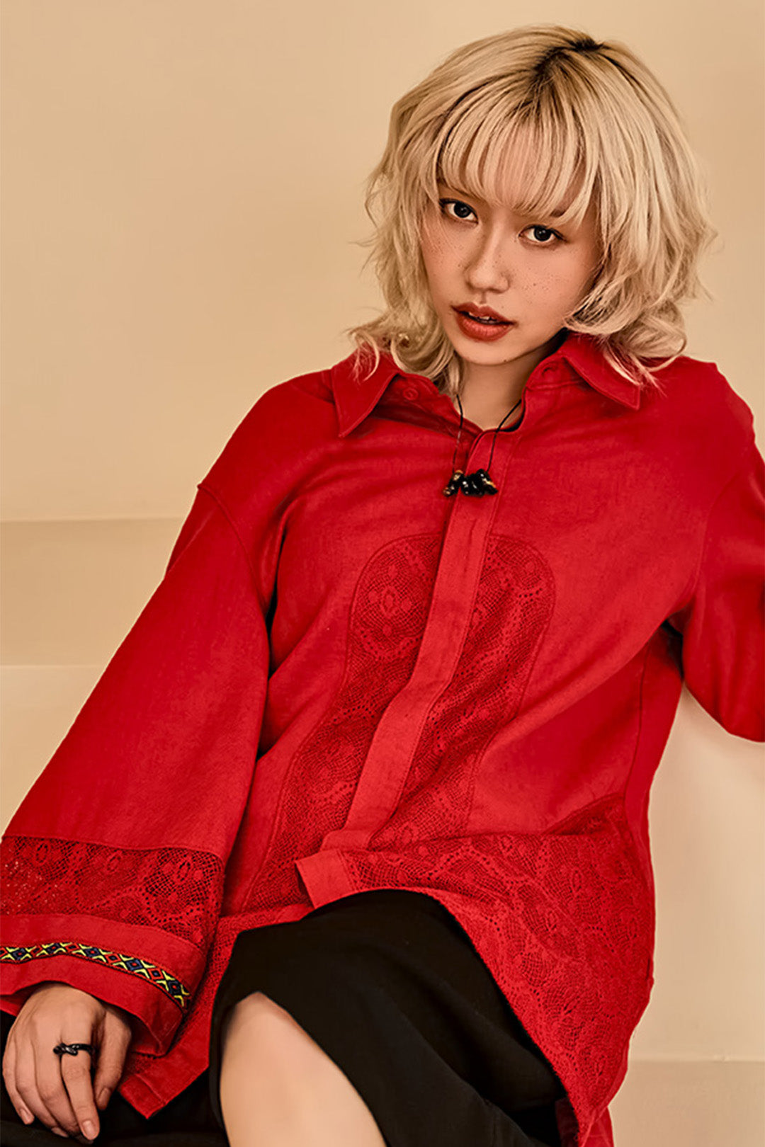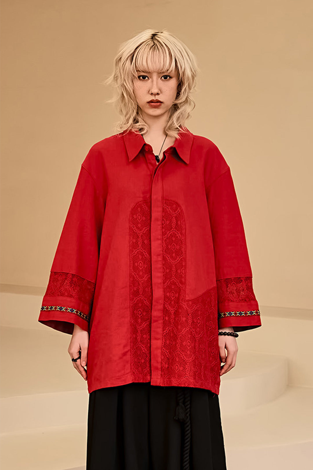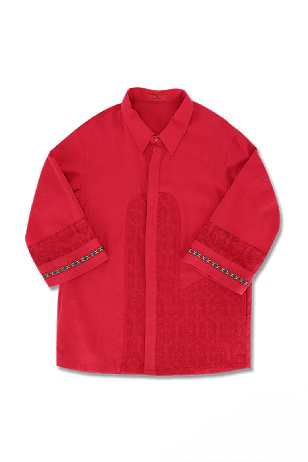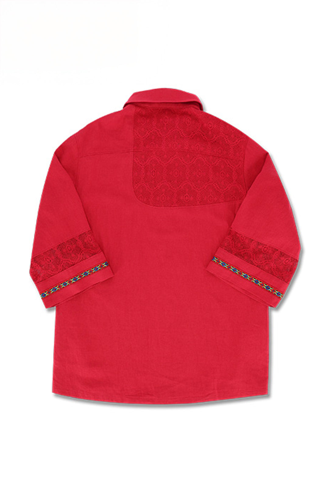 Lace colour Combination Linen Shirt Red