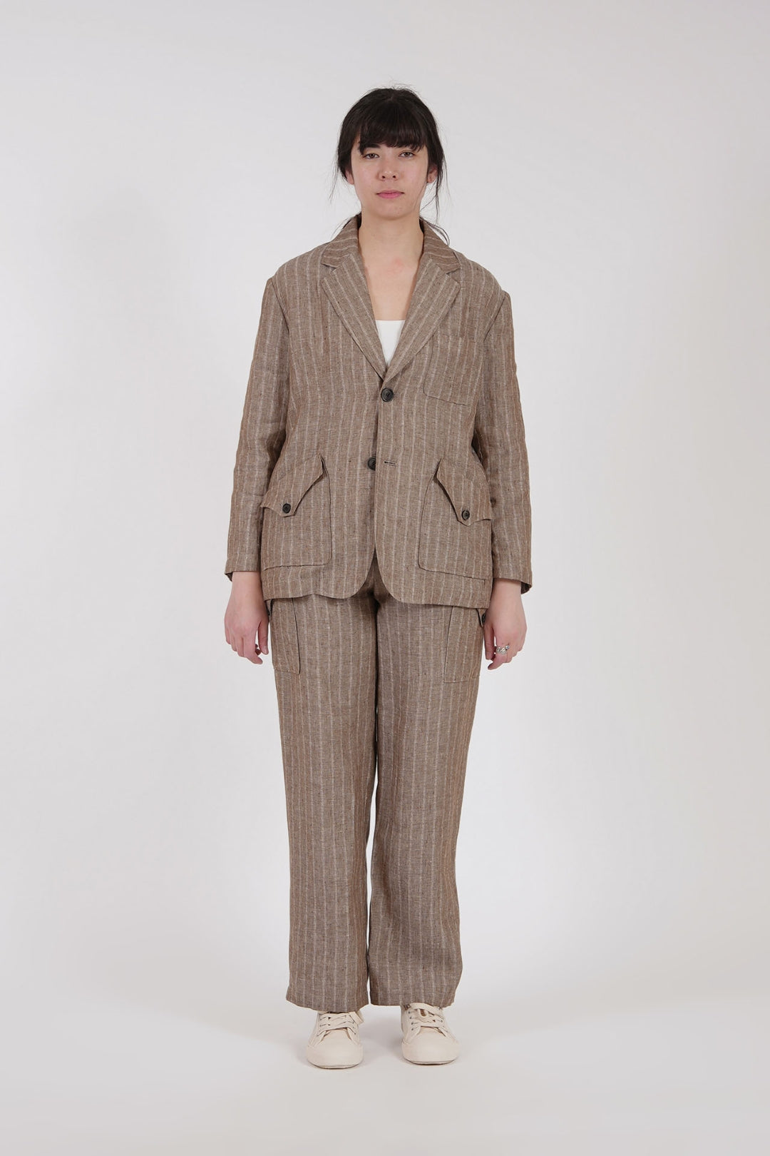 Product Description: Inspired by a commitment to well-being, this linen jacket is thoughtfully crafted with wrapped seams in place of traditional lining for a breathable, lightweight finish. Natural buttons in varied hues and a folded pocket flap add distinctive character, while a custom jacket form ensures precision in every stitch.