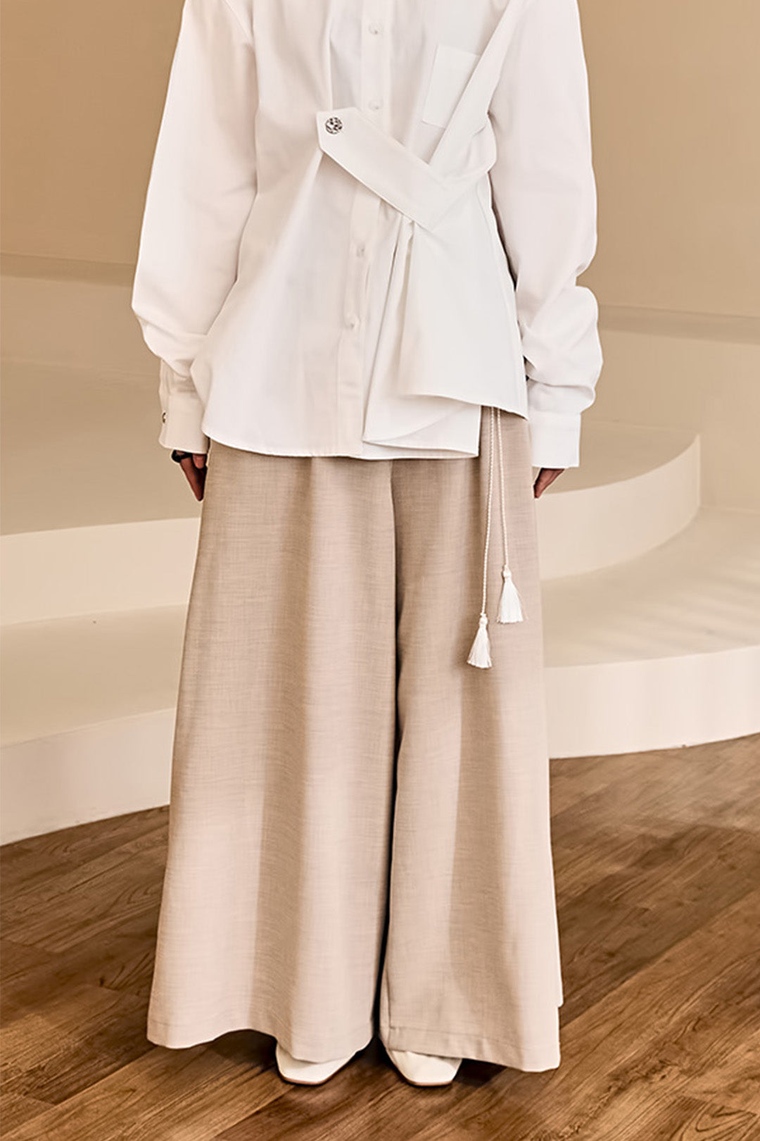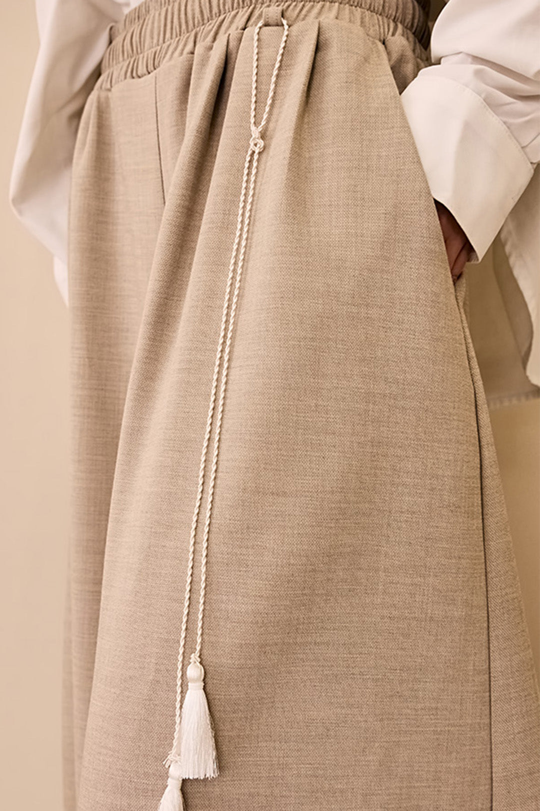 Product Description: These are wide pants with tassel details that add a stylish touch to your outfit.