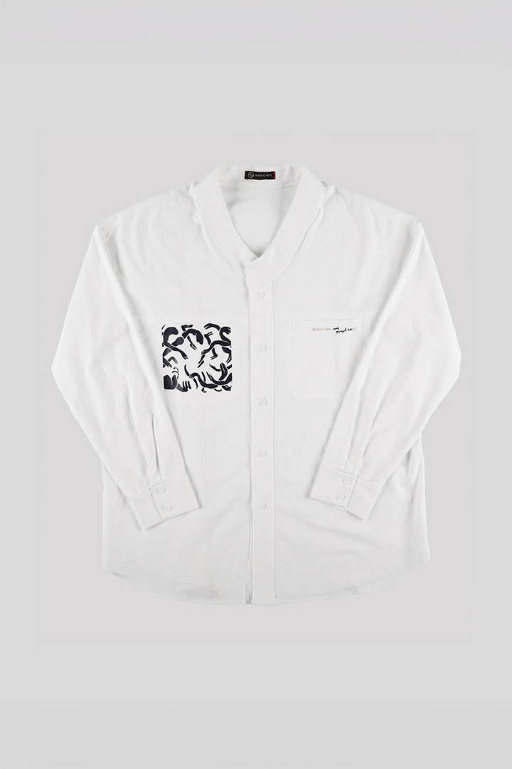 Product Description: This collar shirt, designed in collaboration with Lee Jun Won, features a luxurious fabric inspired by the elegance of hanbok. Its exceptional structure and refined texture reflect the timeless sophistication of traditional Korean craftsmanship.