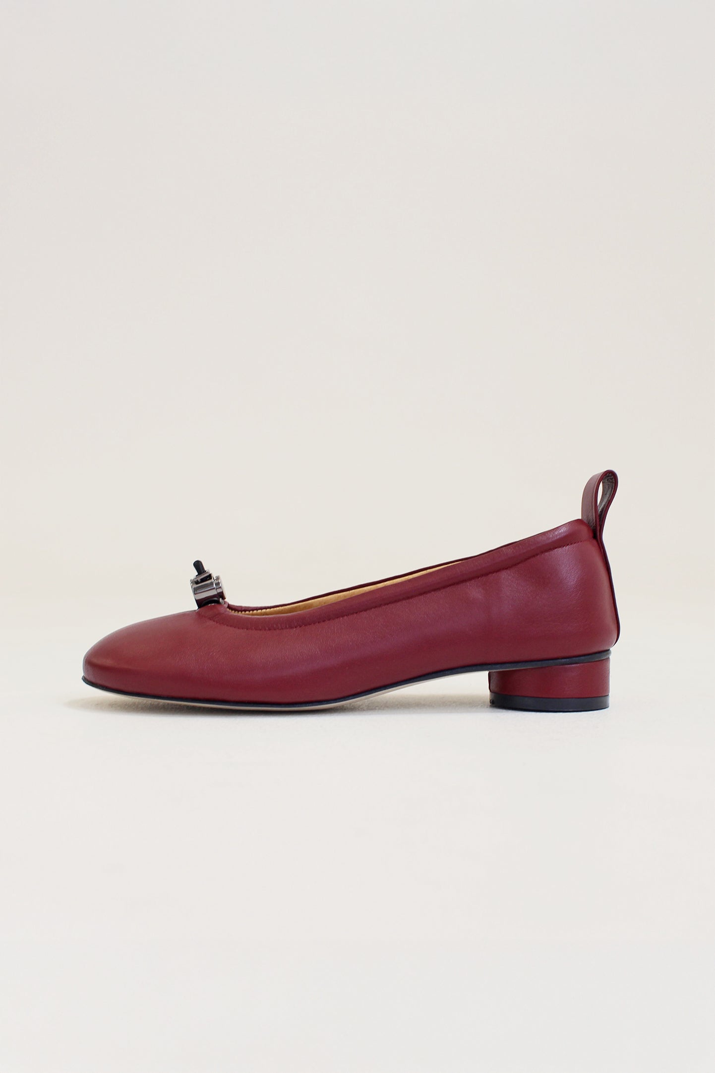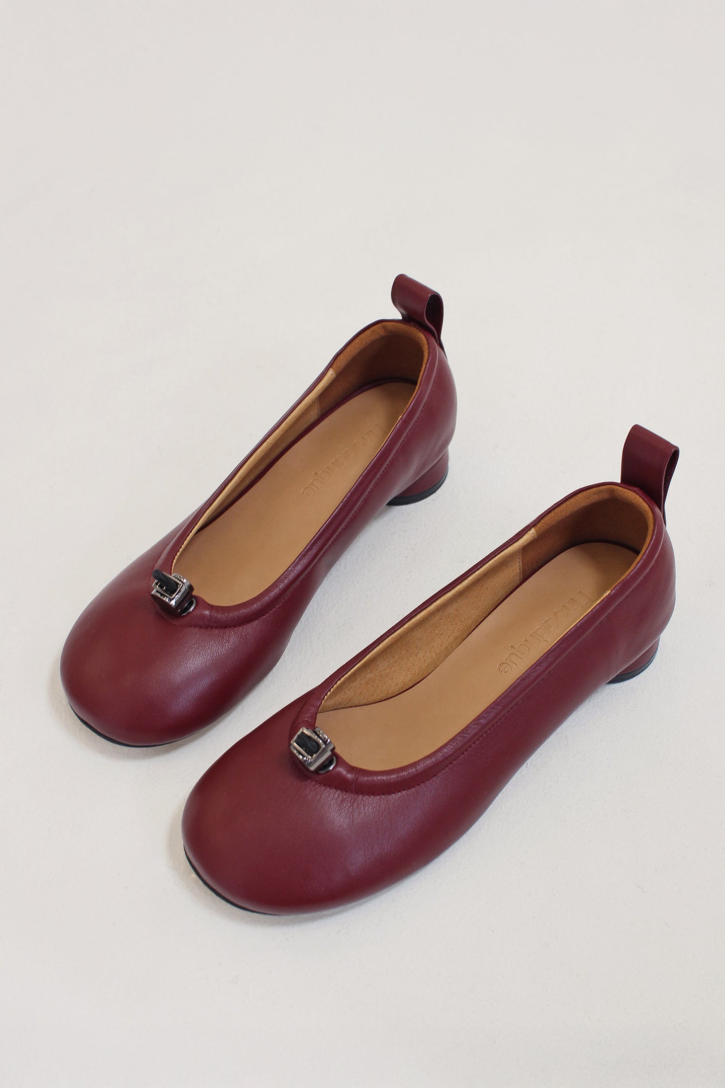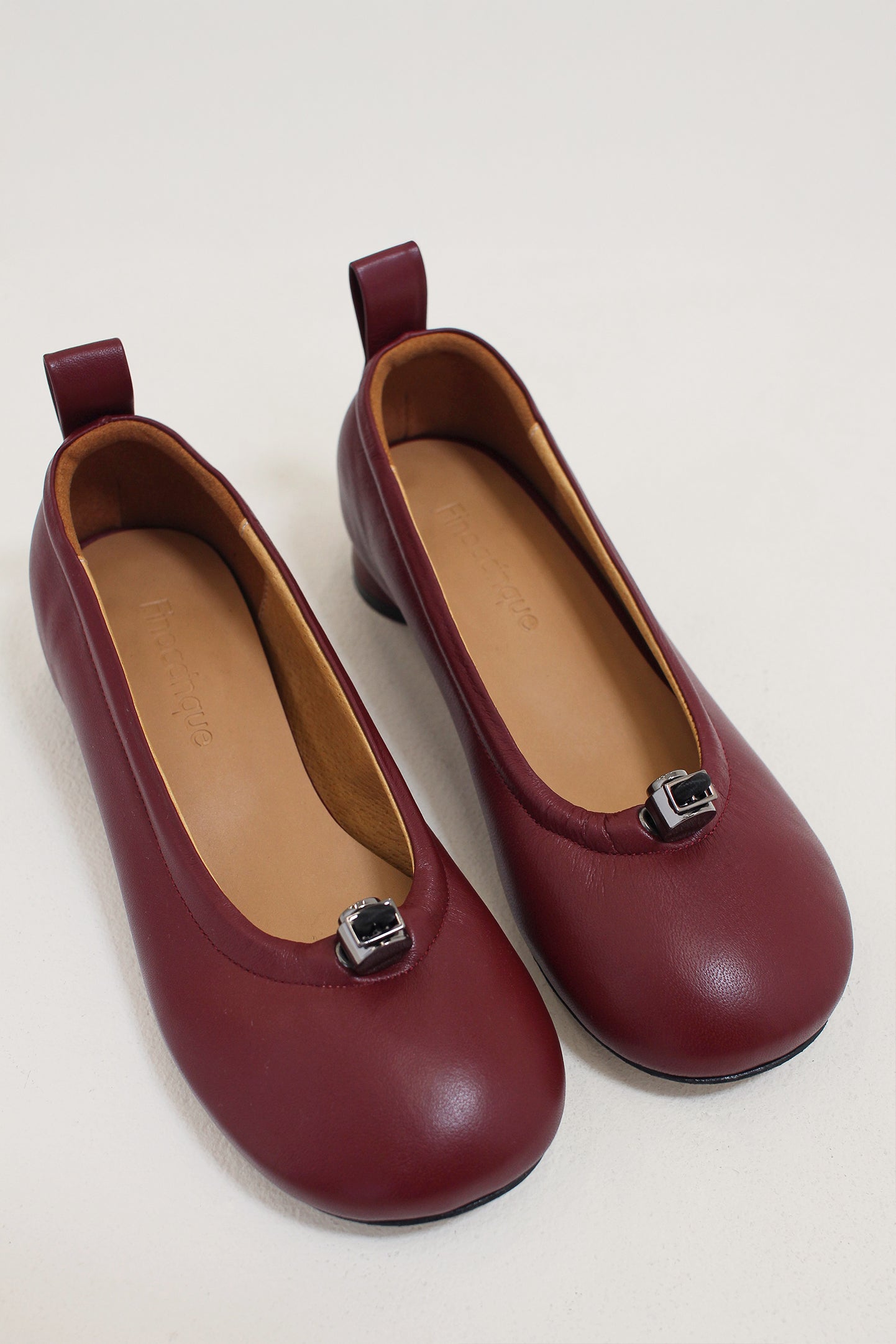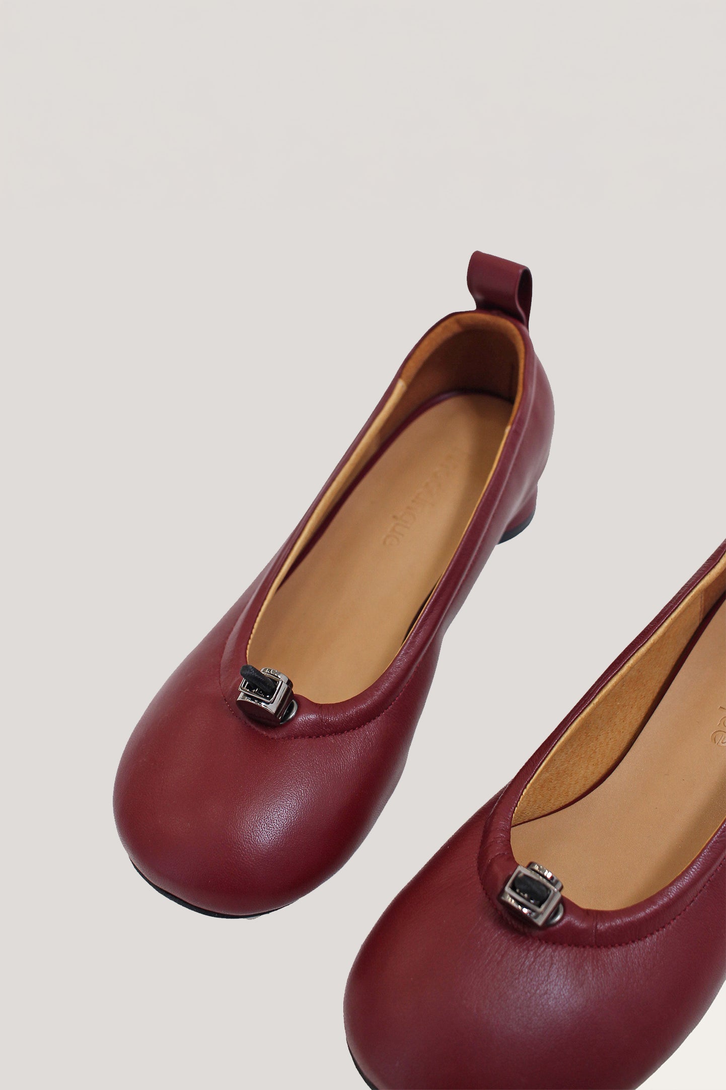 Ngela Round Toe Stopper Flatshoes Burgundy