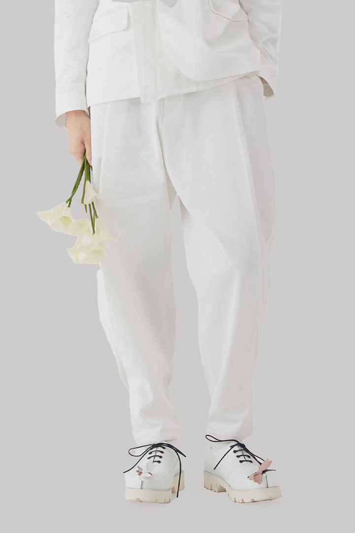 Product Description: The pintuck detail at the waist adds a subtle gathering effect, creating a flattering balloon shape that enhances the overall fit and silhouette, drawing inspiration from the graceful lines of traditional hanbok design.