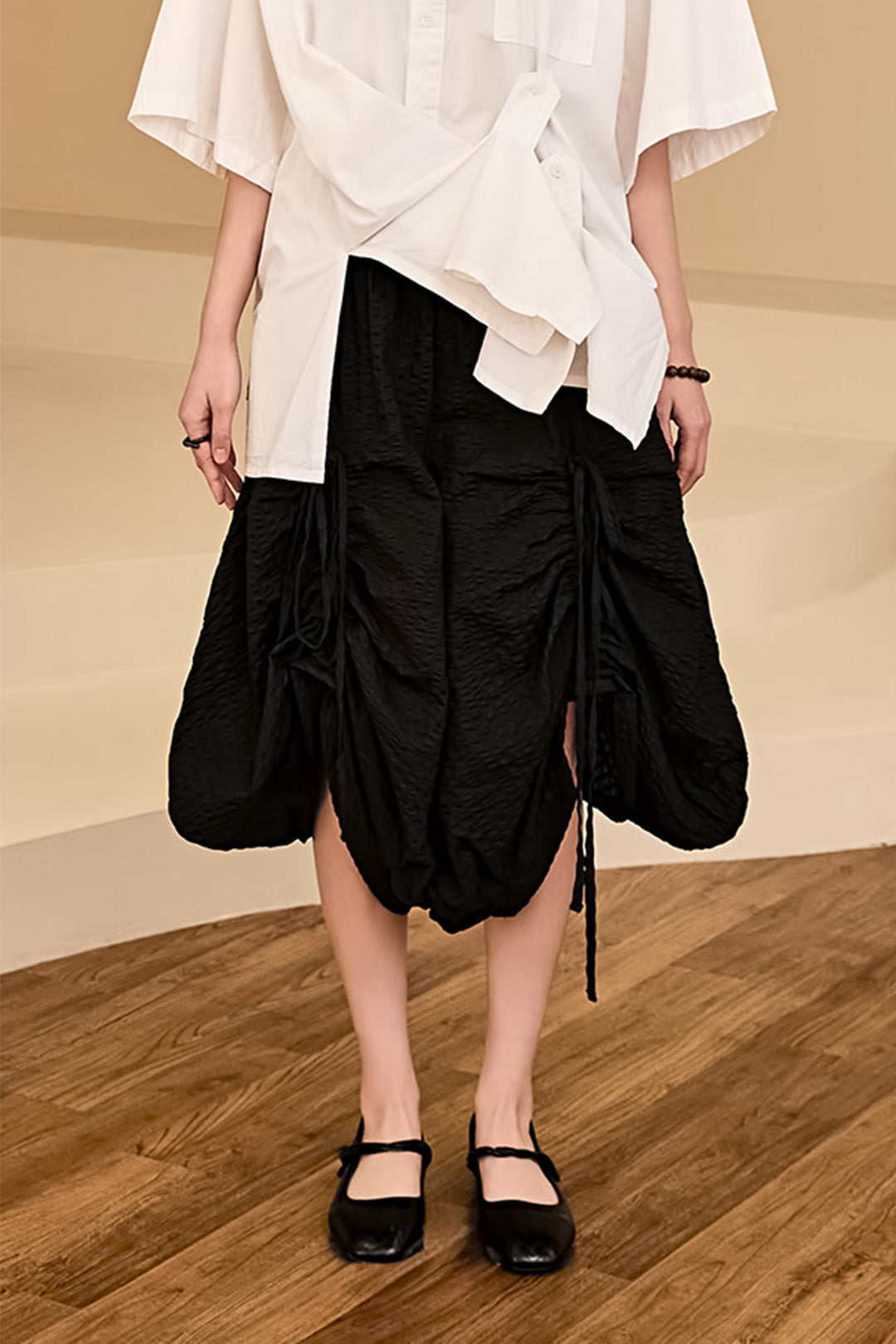 Shirring Skirt Pants Black