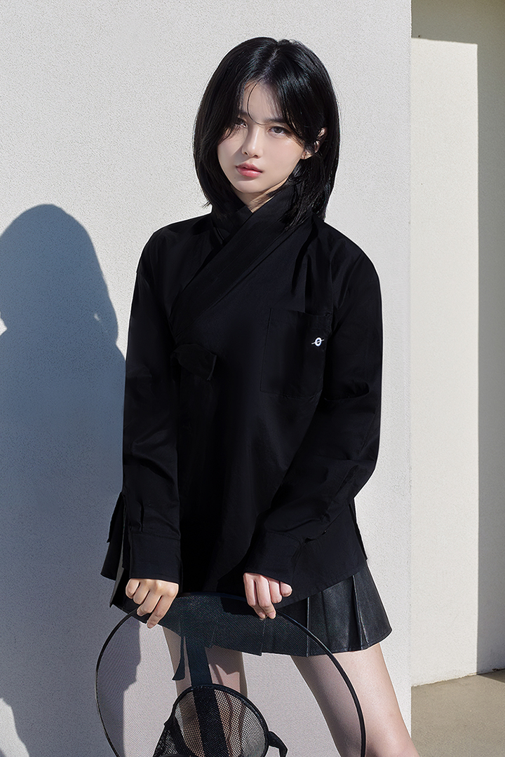 Product Description: This hanbok shirt features a clean and modern pattern,