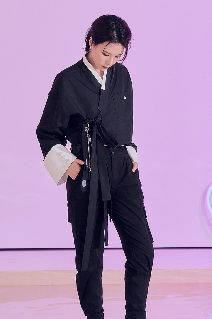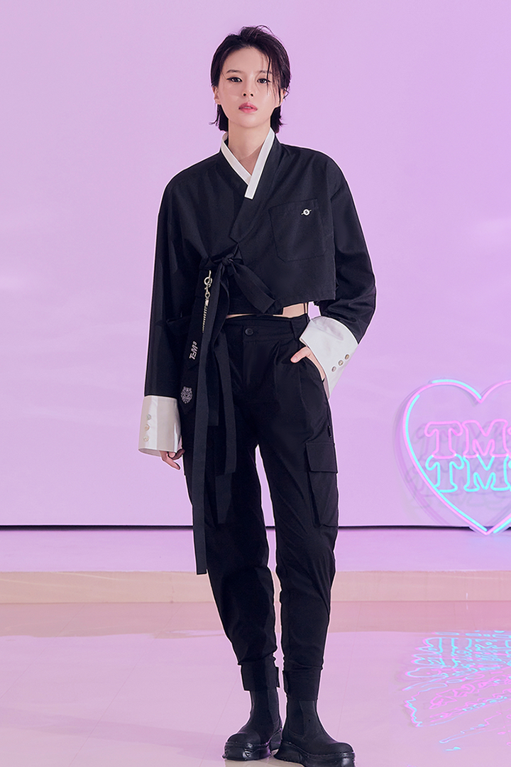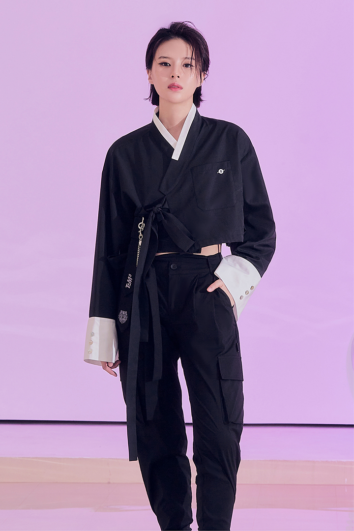 Product Description: By applying a short jeogori pattern, this crop anorak has been designed. Made from sportswear anorak fabric, it functions as a windbreaker,